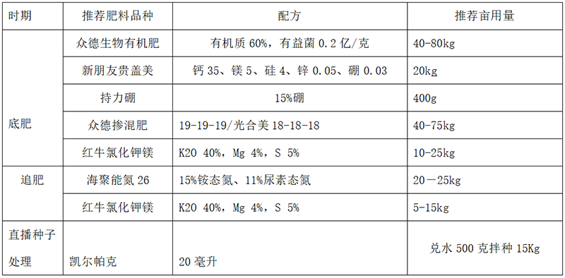 ?。?)推薦施肥套餐(根據(jù)目標產(chǎn)量、地域、品種、生長勢、地力等適當調(diào)整)