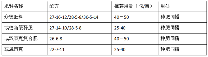 (2)推薦施肥套餐(根據(jù)用肥次數(shù)分類,結(jié)合目標(biāo)產(chǎn)量、地域、品種、地力等適當(dāng)調(diào)整)